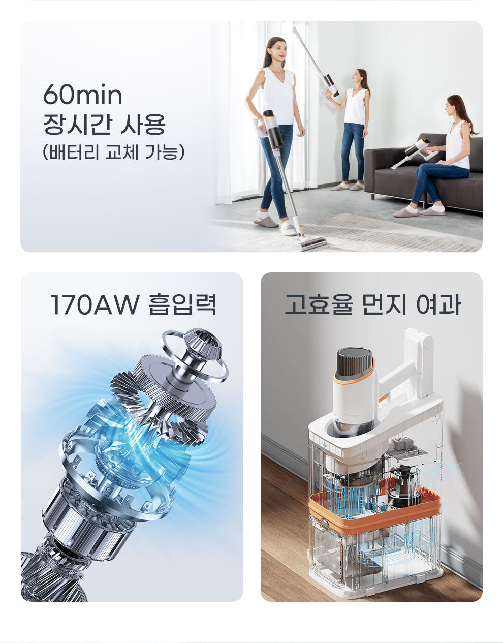 • 흡입력 (Suction Power): 170AW (MAX)