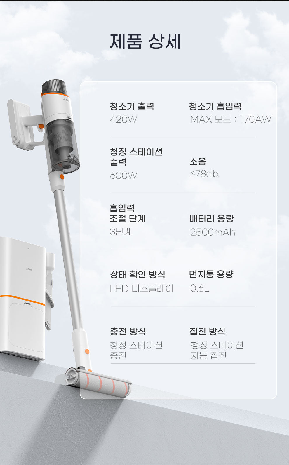 • 충전 방식: 청정 스테이션 충전