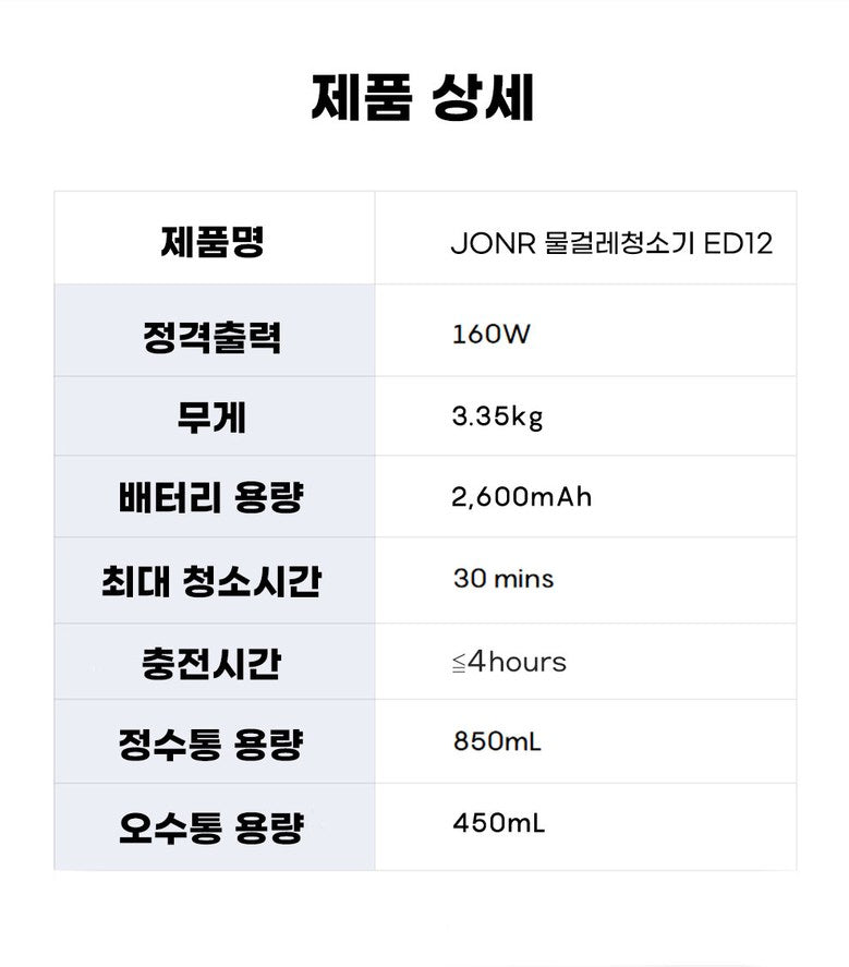 ED12 웨트 & 드라이 청소기 - 제품 사양
